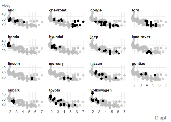 ggauto(displ, hwy, cyl)