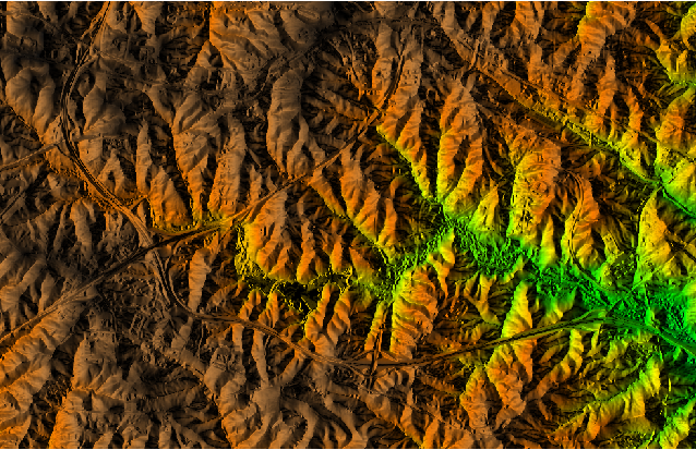 In this next example, a shaded relief raster map is created and used to create a colorized hillshade: