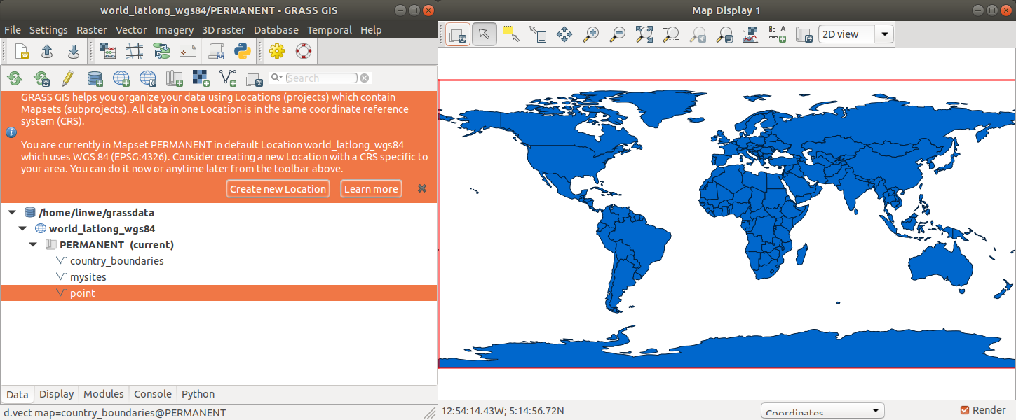 The shell can now execute GRASS commands.