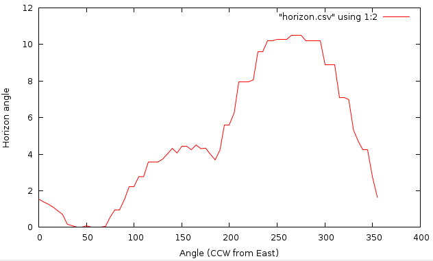 Horizon angles for test point (CCW from East)