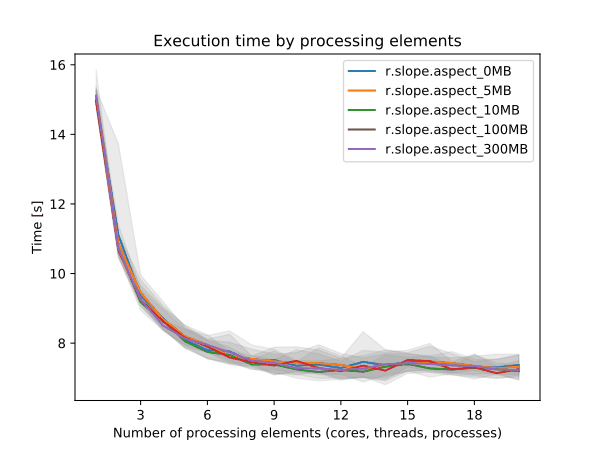 memory size for 5000x5000 raster. See benchmark scripts in source code.