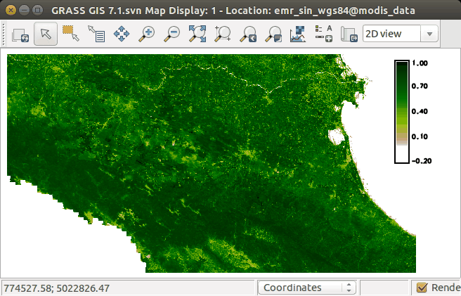 represent real ndvi values. Moreover, GRASS provides a predefined
