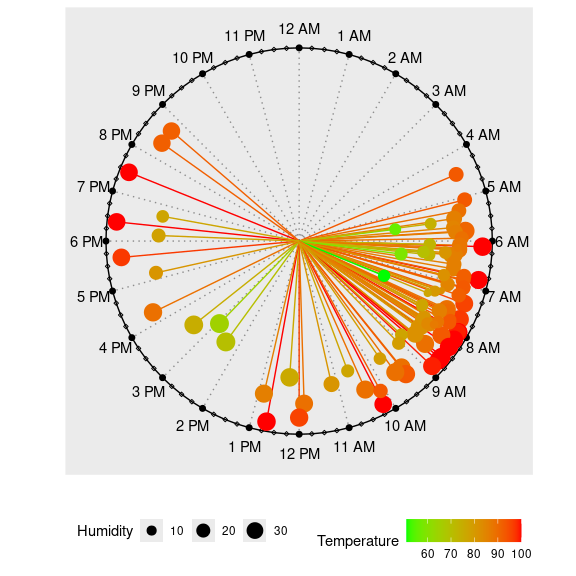 acdt clock_chart_qnt(acdt, time = Time, len = Humidity..., Col = Temperature.F.) +