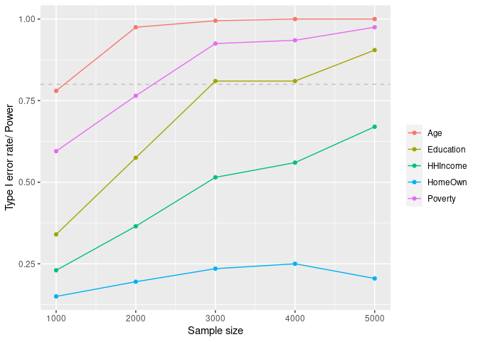 #> |HHIncome | 0.670| 5000| 0.03|