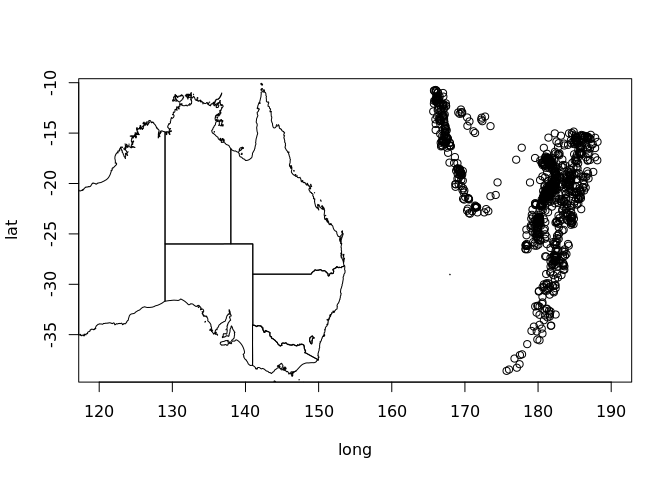 maps::map(database = "worldHires", regions = "australia", xlim = c(145, 148.5), ylim = c(-43.6, -40.8), add = TRUE)