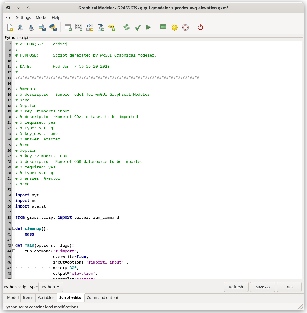 Figure: Script editor in the wxGUI Graphical Modeler.