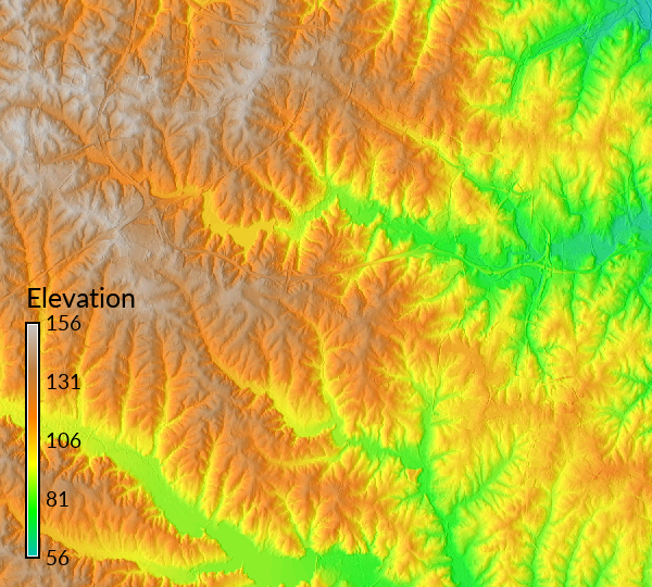 Blending the aspect map with the elevation map for a shaded map (North Carolina sample dataset):