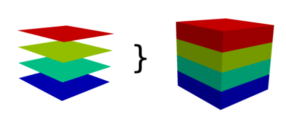 Converts 2D raster map slices to one 3D raster volume map.