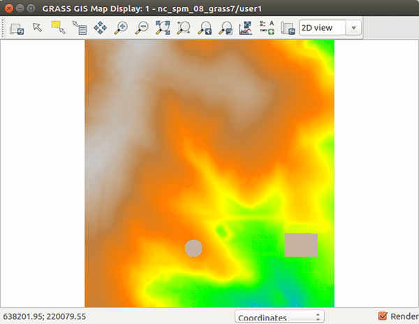 In the following figures we start with elev_lid792_1m raster map in North carolina sample dataset