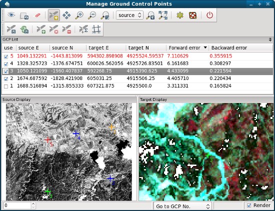 - Source and target display are adjusted by using the current GCPs for