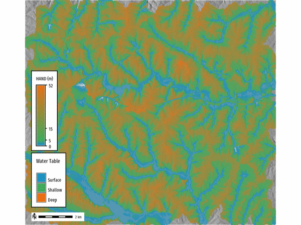 Figure: Height Above Nearest Drainage (HAND) water table classification.