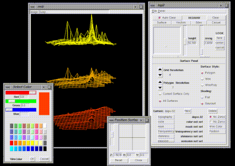 Snapshots. These thumbnail images are links to full size screen dumps showing some of the multiple surface features of nviz.