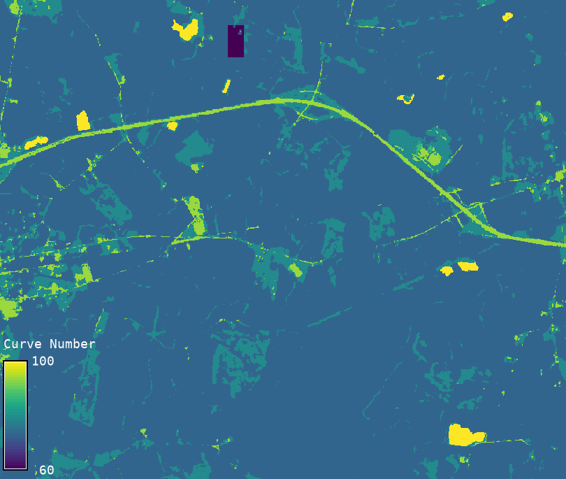Generates a Curve Number (CN) raster using landcover and hydrologic soil group (HSG) rasters, along with user-specified hydrologic condition and antecedent runoff condition.
