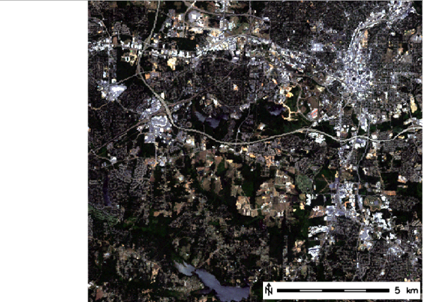 Second part of the unsupervised classification of a LANDSAT subscene (VIZ, NIR, MIR channels) in North Carolina (see i.cluster manual page for the first part of the example):