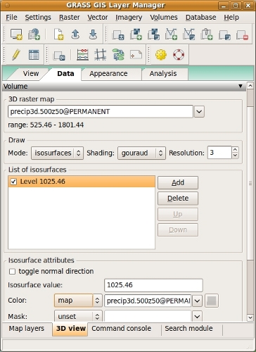 - isosurface - the levels of values for drawing the 3D raster(s) as isosurfaces,